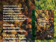 Javna ustanova za upravljanje zaštićenim dijelovima prirode Krapinsko-zagorske županije – Zagorje Zeleno poziva Vas na predstavljanje vodiča za šumovlasnike „Očuvanje bioraznolikosti u privatnim šumama“ autora prof. dr. sc. Ivana Martinića, u izdanju Javne ustanove Zagorje Zeleno.