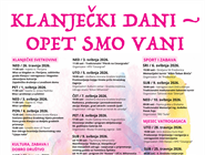 Ovogodišnji "Klanječki dani - Opet smo vani!" donose spoj tradicije, kulture, zabave, sporta i druženja, a brojna događanja raspoređena su kroz nekoliko tematskih cjelina: klanječke svetkovine, kultura, zabava i dobro društvo, sport i rekreacija te mjesec vatrogasaca.