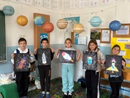 Učenici 4. razreda PŠ Lepajci s učiteljicom Martom Obadić izradili su instalaciju Sunčevog sustava od lampiona i galaksije tehnikom špricanja tempera u stilu Jacksona Pollocka. Dodali su i vlastite svemirske letjelice, stvarajući kreativni kozmički svijet boja i mašte.